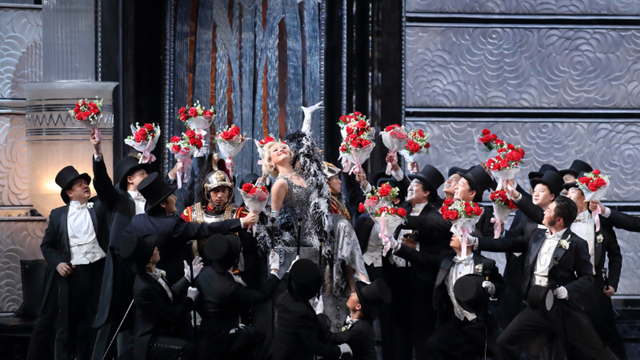 三幕轻歌剧《风流寡妇》是维也纳轻歌剧鼎盛时期的代表作,它根据法国梅雅克的喜剧《大使馆随员》改编而成,由雷翁和史坦恩编写剧本,匈牙利作曲家弗朗兹·雷哈尔谱曲,1905年12月30日在维也纳喜歌剧院首次公演,立刻收获热烈反响,成为连续上演超过五百场次的畅销热卖剧目;同时在许多国家也博得空前欢迎、盛演不衰,甚至被拍成电影。 此剧德文名称中的“lustige”一词是“风趣”的意思,在英文中被译为“Merry”(“快乐”的意思),对于剧中女主角、年轻貌美的寡妇汉娜·格拉瓦里,“风流”一词或许更适合解释为“高尚又清雅”。《风流寡妇》的音乐中既保持了高雅的艺术品位,又穿插了生动活泼、谑而不虐的喜剧性插曲,做到了让剧中重要角色的音乐个性鲜明、优美动听;本剧对于舞曲音乐的运用也极具特色,其圆舞曲旋律较小约翰·施特劳斯的作品更为舒缓,因此也更富于抒情气质。 2017年1月,国家大剧院制作雷哈尔轻歌剧《风流寡妇》首度亮相,为了拉近这部传统维也纳轻歌剧与中国观众的距离,国家大剧院力邀有过多次合作的著名歌剧导演乌戈·德·安纳担任这一制作的导演、舞美设计和服装设计。乌戈·德·安纳导演通过卓越的舞台呈现将剧中原本发生在二十世纪初的故事移植到二十世纪二、三十年代,在舞台细节的处理上也处处留意、匠心独运,甚至每一处玻璃装饰花纹的选择,都考虑到了中国观众的审美需求。